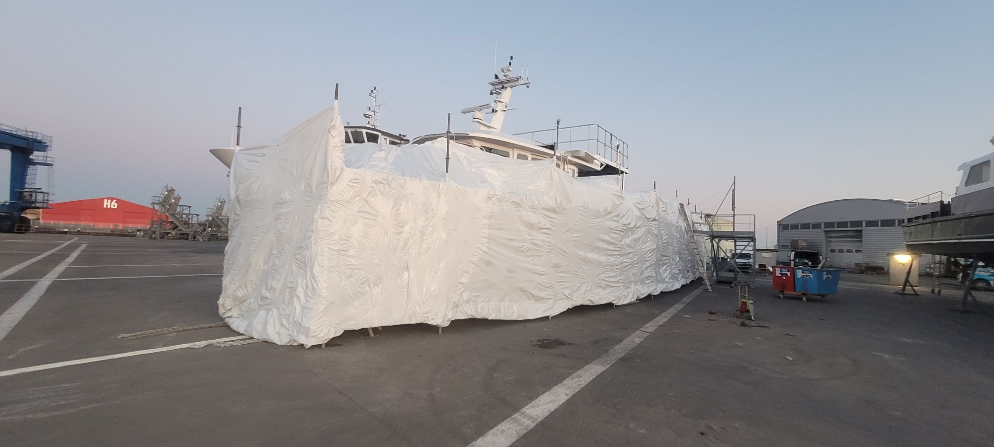 Le confinement thermoplastique offre des solutions de protection optimales. Il agit comme un emballage. Votre embarcation se retrouve ainsi à l’abris des rayures et des intempéries. Il est préconisé lors des transports maritimes et/ou routiers mais également lors des périodes d’hivernage, de cocooning ou pour la mise en chantier extérieur.